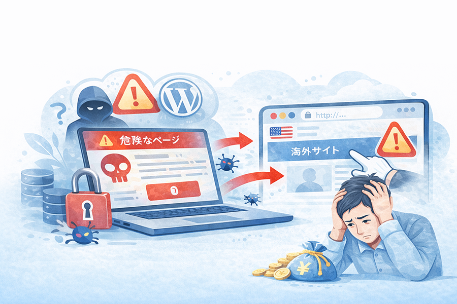 実際に、WordPressを数年間更新していなかったサイトで、不正アクセスにより海外サイトへリダイレクトされる被害が発生しました。